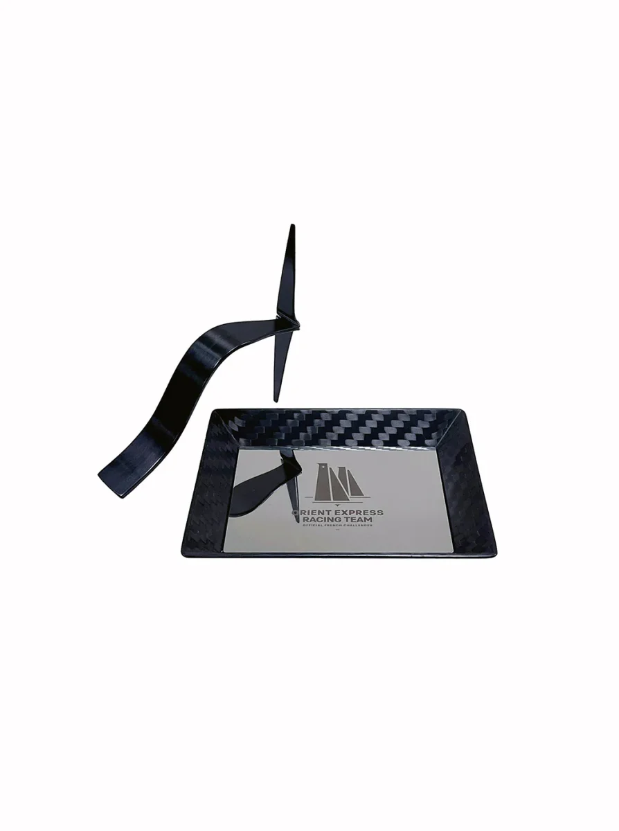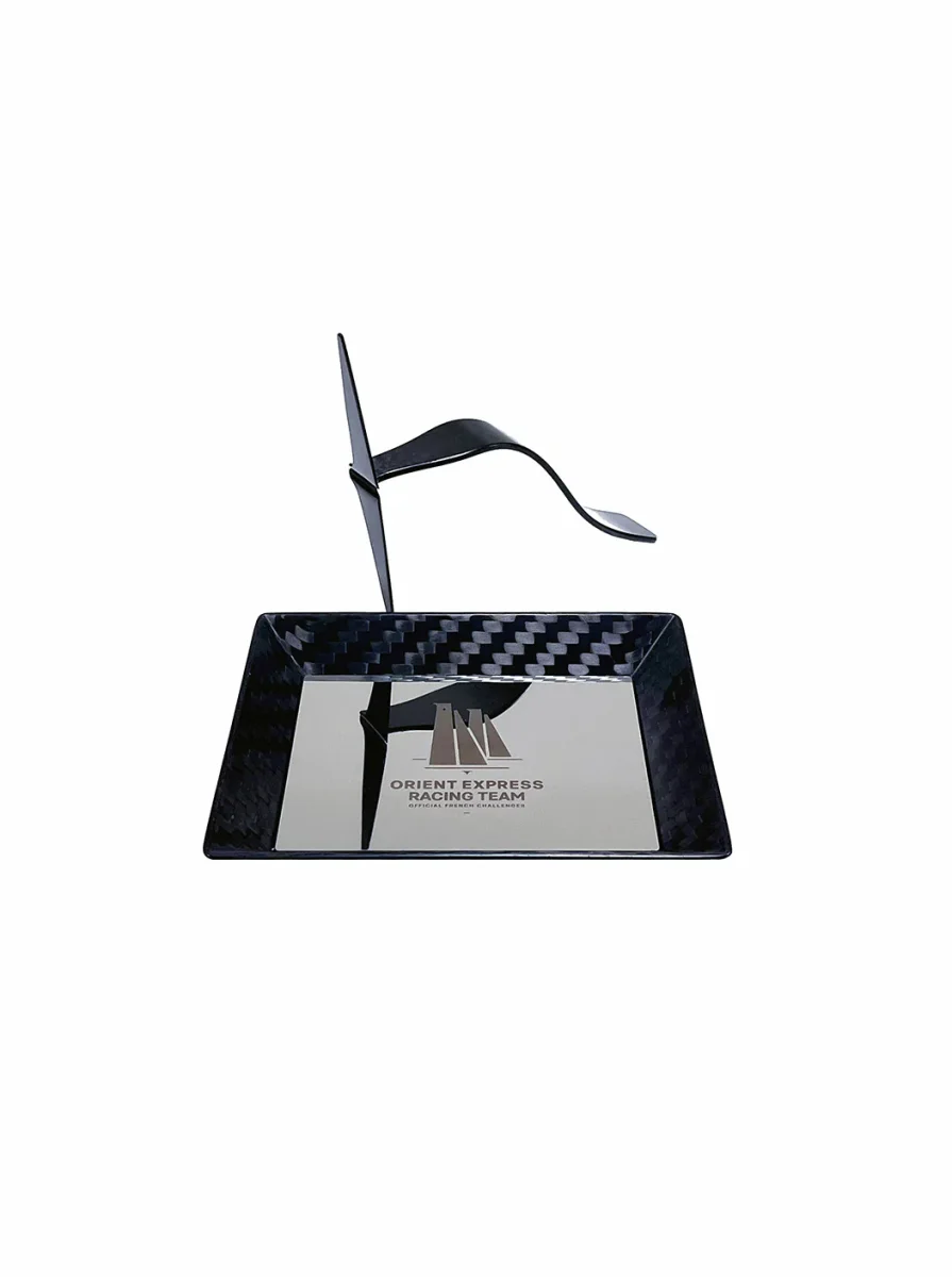 Un vide-poches unique en son genre pour votre décoration ou vos objets précieux. Réalisé en carbone recyclé issu de chutes de construction de l’AC75 ORIENT EXPRESS RACING TEAM, ce vide-poches met à l’épreuve les fibres de carbone avec ces formes anguleuses. Sa forme rectangulaire met en avant l’aspect des fibres tressées. Le choix du fond […]