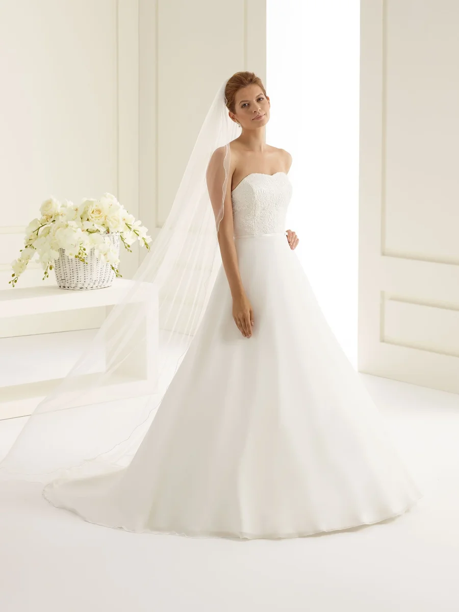 Voile bordure festonnée, longueur 200 cm.